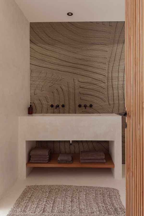 Revêtement mural breveté, totalement imperméable, conçu pour les zones humides en contact direct avec l’eau, telles que les salles de bains, les douches, les cuisines, les piscines et les spas.